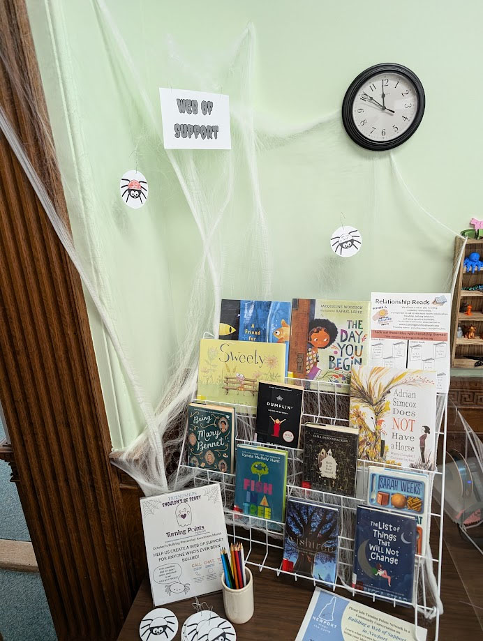 Books about healthy relationships and a “web of support” featuring encouraging words at Richards Free Library in Newport is part of The Center for Safer ...